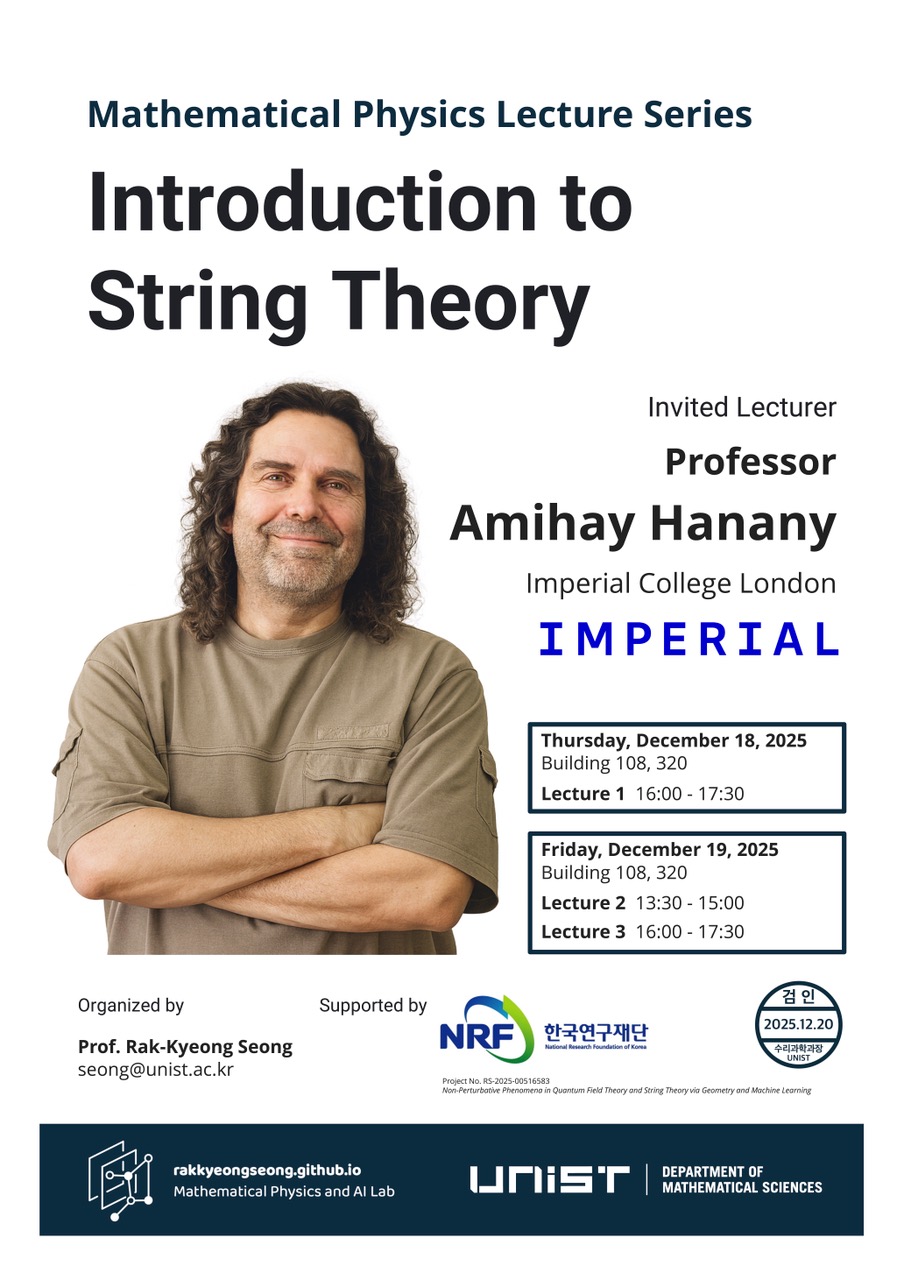 Introduction to String Theory 2025.11.26 Date 2025-12-18 (16:00 ~ 17:30) Location UNIST Building 108, Room 320