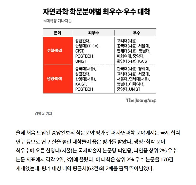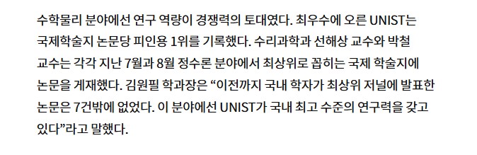 UNIST 수리과학과, 중앙일보 주요 학문분야 “최우수” 대학 선정 2025.11.26 기사 원문 https://www.joongang.co.kr/article/25384757 https://www.joongang.co.kr/article/25384748